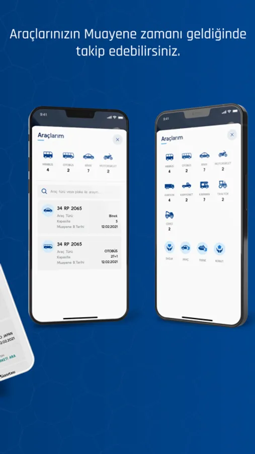 Sisteme kayıtlı araçlarınızın poliçeleri ve muayene tarihlerinin bitimine 15 gün kalla size hatırlatır.