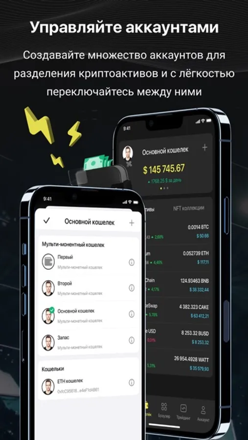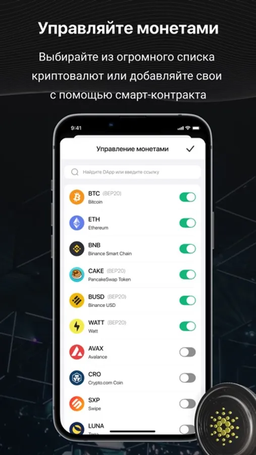 A fully decentralized multicurrency crypto wallet, supports a huge number of cryptocurrencies and tokens. Your SEED phrase is stored only on your device and never goes online.