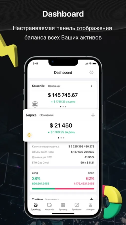 A convenient panel for displaying the value of all your assets. Up-to-date information in one place and in real time.