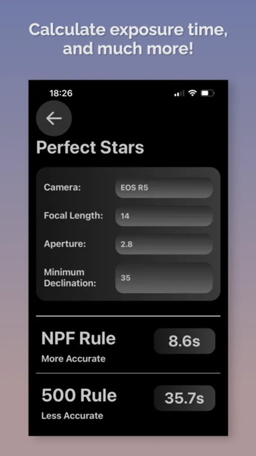 Nox Sky is an app that will bring the astrophotography community together. Go to the Community Map to see all the photos that have posted on a map of the Earth! Each photo is unique and you can view the profile of the astrophotographer that took it. If you don’t want to go under the stars alone, you can invite users in the app to come along with the Network feature! You can either search for a trip that has been posted near you or post a trip of your own for others to join. To find a dark sky location near you, use the Light Pollution Map. If you need to calculate your camera settings and shutter speed, you can use the Perfect Stars feature. Just pick your camera and the app will calculate the 500 rule and NPF rule for you. To know astronomical events that will be happening soon, use the Future Events feature. Scroll down to view essential information on conditions around your location tonight, like sun and moon rise/set, moon phase, and the weather!