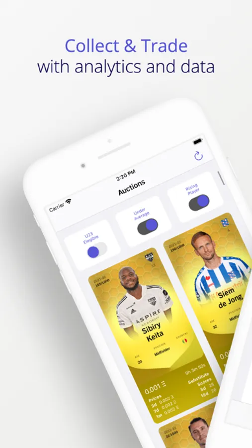 - Filter your auctions with players below average price, only rising players, by position and rarity