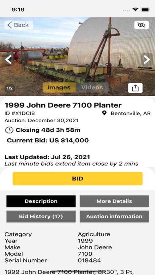 Registered users get access to online bidding on items available in unreserved auctions conducted by BigIron. Users will have access to thousands of detailed item descriptions for both current and upcoming auctions.