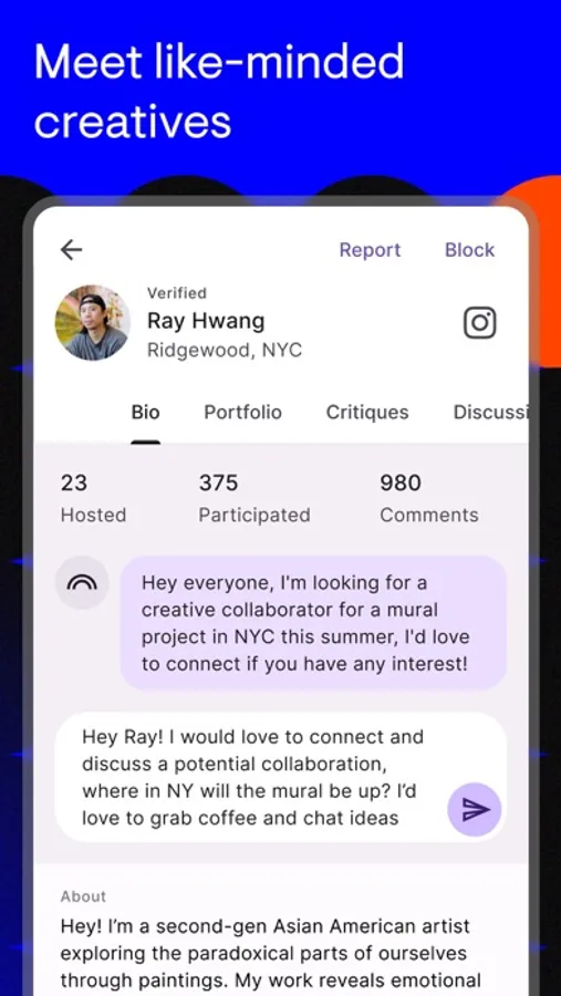 Symposia is all about creating and building meaningful relationships with other artists and creatives. Whether you're looking for a collaborator or want to make new connections, Symposia provides a platform to create and build relationships to help you achieve your artistic goals.