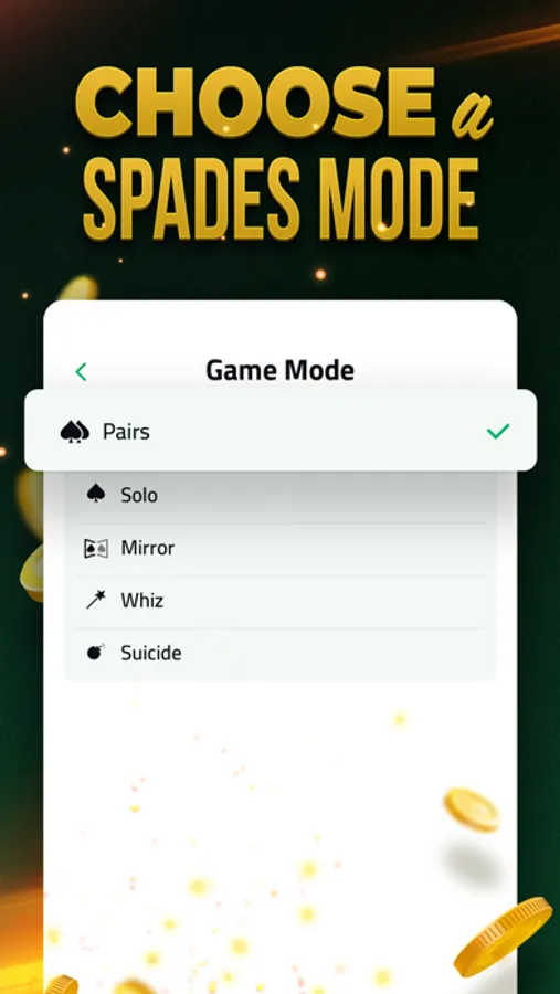 Spades is a card game from the Whist family that can be played in solo mode (""cutthroat"") or with a partner (pairs). Spades are always the trump suit, and the main goal of the spades game is to win the least tricks.