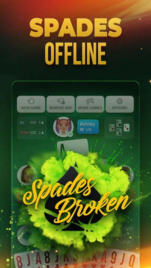 Play Spades offline as a single player! Free Spades plus train against high-level AI opponents! Start a game of Spades with jokers, and play without waiting for other players to take a turn. Offline card games are more fun when you play at your own pace!