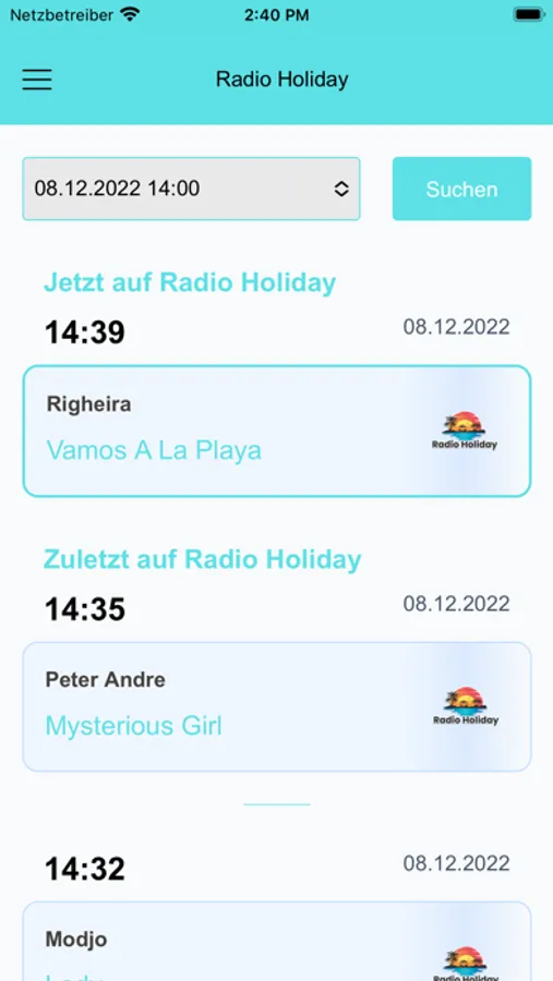 Bei „Radio Holiday“ handelt es sich um ein neuartiges Radioprogramm, bei dem die Hörer Urlaub vom stressigen Alltag machen können. Die Hörer erleben bei „Radio Holiday“ ein echtes „Gute Laune Wohlfühlradio“. Das Programm wird Nachrichten, Wetter, Reisetipps und vieles mehr für das perfekte Urlaubsfeeling für die Ohren bieten, musikalisch begleitet von den größten Urlaubshits der letzten 40 Jahre.