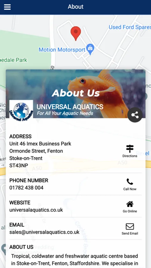 Tropical, coldwater and freshwater aquatic shop based in Fenton, Stoke-on-Trent, Staffordshire. We specialise in ponds, aquariums and all other supplies.