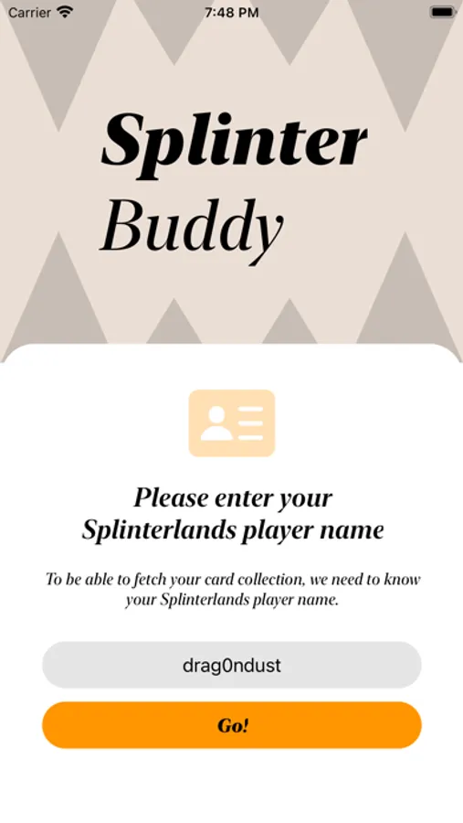 With Splinterlands Buddy you can view your Splinterlands card collection on the go at any time. Just add your player name to the app and you're ready to go!