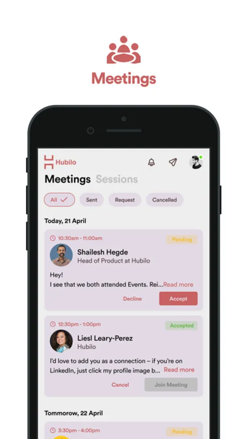 Set up meetings with potential attendees (investors, mentors, industry professionals) by using the chat feature.