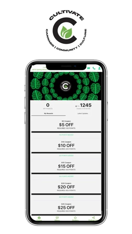 As a Cultivate community member. you will be able to earn and track points with every purchase. Not a Cultivate community member yet? Easily signup in our app!