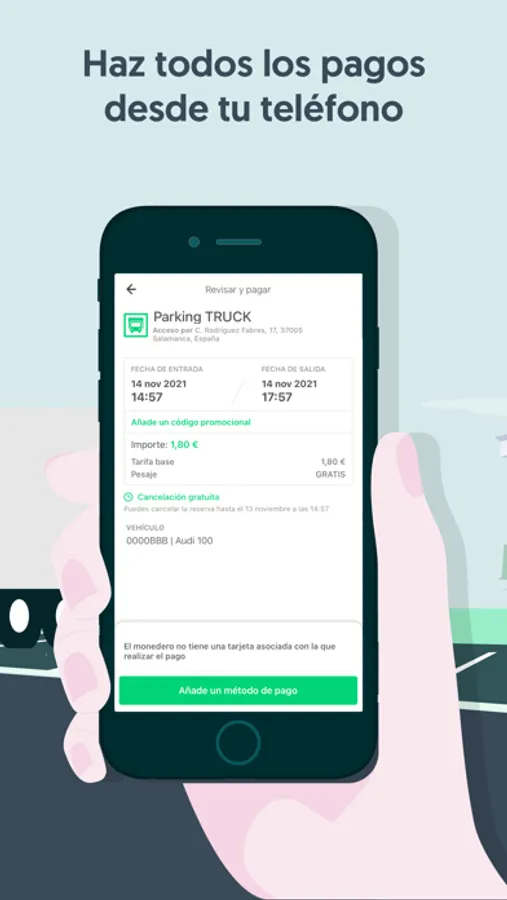 Encuentra un parking cuando lo necesites, cerca de ti o cuando viajes. No te preocupes por el efectivo para pagar, usa nuestra app, sin tickets ni colas en cajeros. ¡Y ahorra tiempo y dinero!