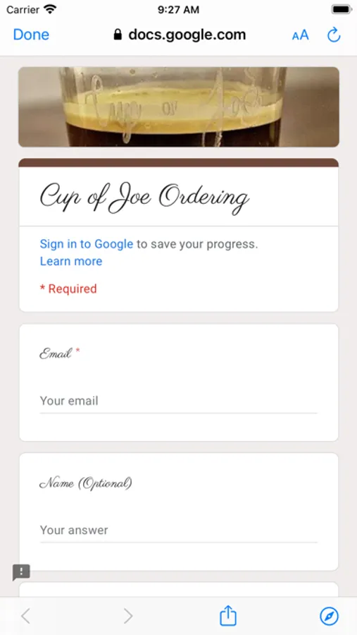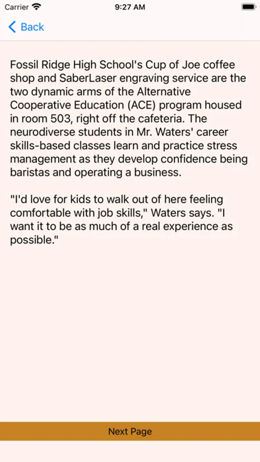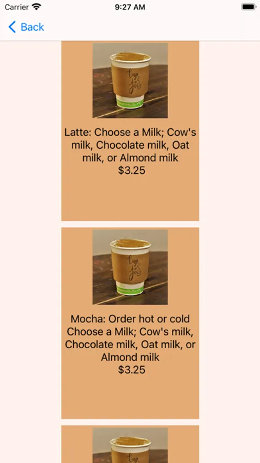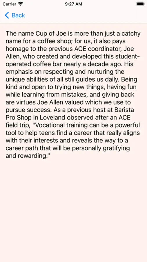 This app is the cup of joe app and you can read about cup of joe, view the staff and student menus and order from the app for pick up.