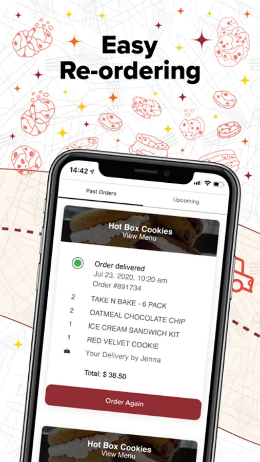 Like a tiny Hot Box Cookies that lives in your phone, our app lets you order our warm fresh-baked cookies for delivery, pickup, and even catering. Plus, you can earn points and redeem Hot Box rewards!