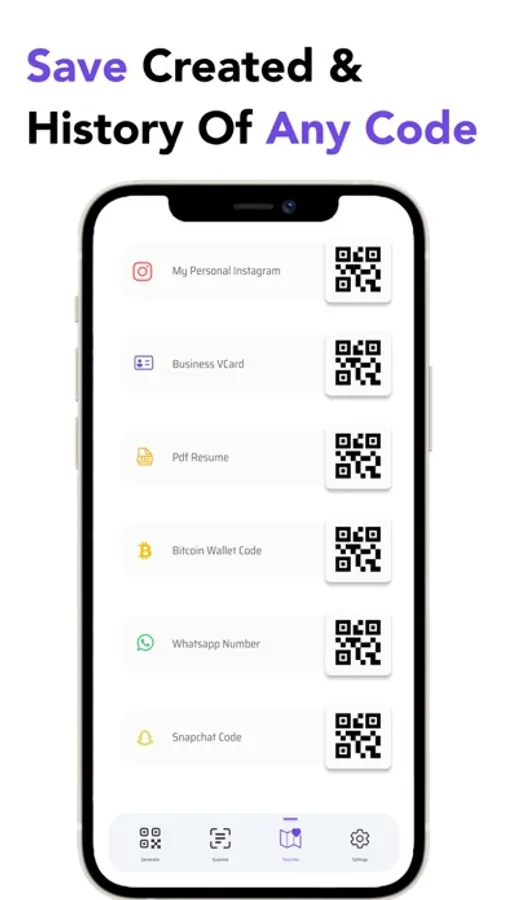 - Save all Generated or Scanned codes in organised one screen