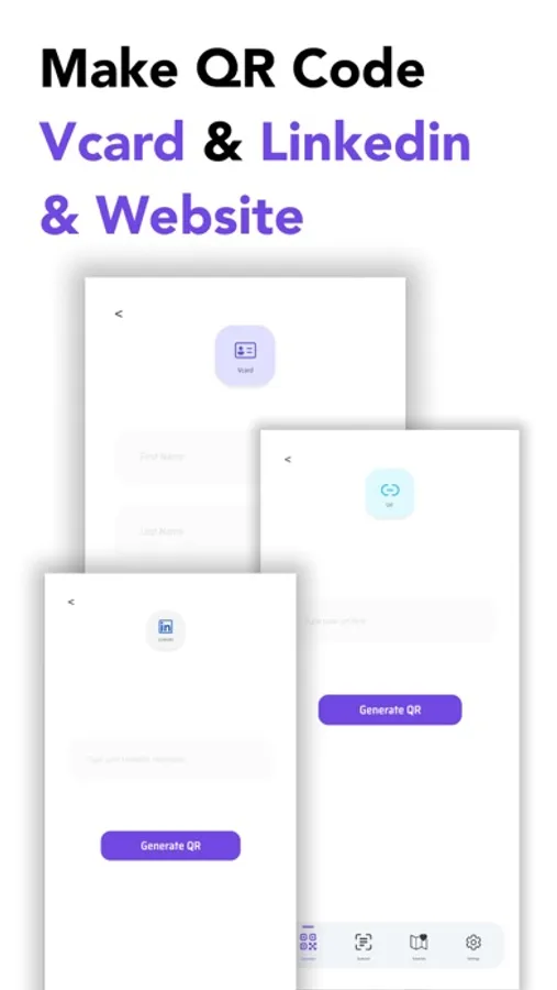 - Generate QR codes for “Email, Business Card, Phone Number, Url, Wifi, Pdf, Image,