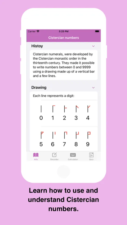 Use this app to create/decode Cistercian numerals. Learn how they work and test your knowledge with quizzes.