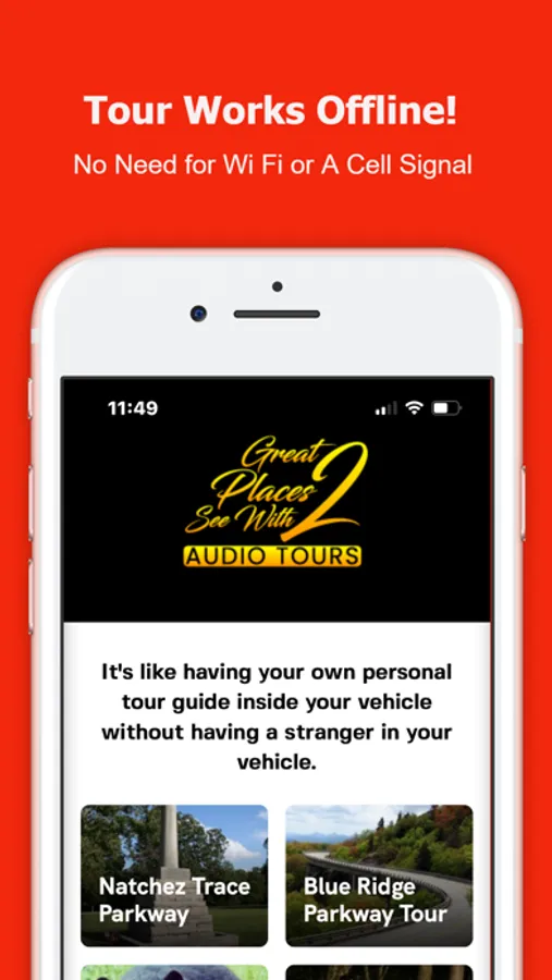 Great Places 2 See provides audio commentary automatically as you travel. We allow you to put the maps and brochures in the glovebox and your eyes back on the beautiful sites as you travel. Your smartphone will be your Tour Guide. It works similar to turn by turn navigation.