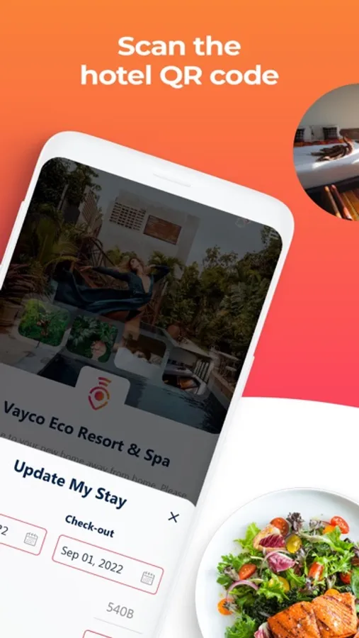 With Vayco+, you can easily connect with our partnered vacation properties and have all their amazing amenities in the palm of your hand. Just scan the QR code at your vacation property, and you’ll have everything you need right at your fingertips, from spa treatments to poolside drinks -- all the amenities that property offers.