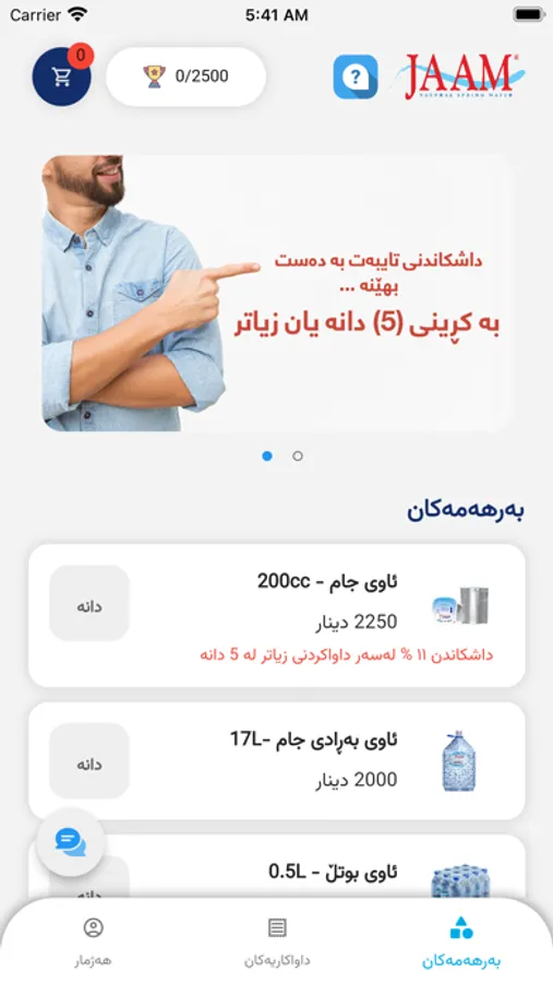 This App allows Jaam Water customers to request all types of bottled water to be delivered to their desired location. The app allows the customers to submit orders, specify the delivery date and time, track orders, and check order status.