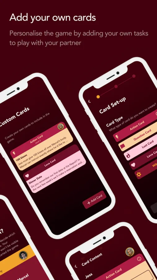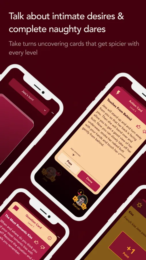 * Over 450 unique cards: answer intimate questions, complete naughty dares and collect romantic and erotic cards
