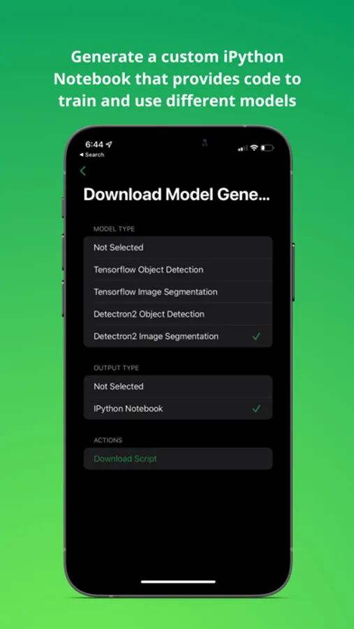 - Download a custom generate iPython Notebook to provide you with a starting point of how to create a model from your training data