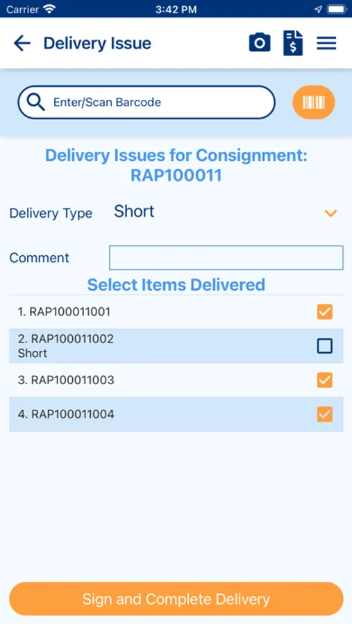 - Record delivery issues such as reasons for non-delivery or short/partial deliveries with each item individually tracked