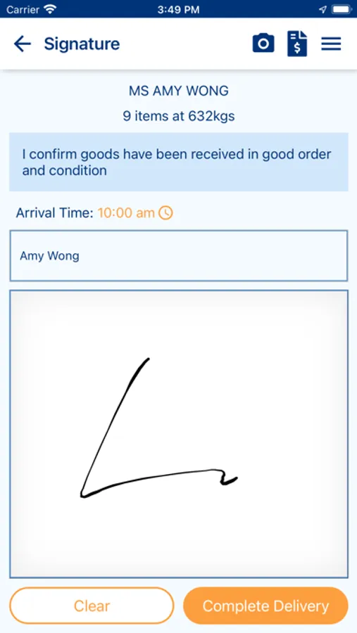 - Log additional charges such as wait time, hand unloading or futile deliveries/pickups