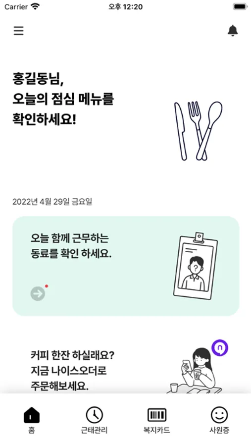 실물사원증의 기능 그대로 모바일사원증에 담아 출입과 임직원 식별 기능을 제공합니다.