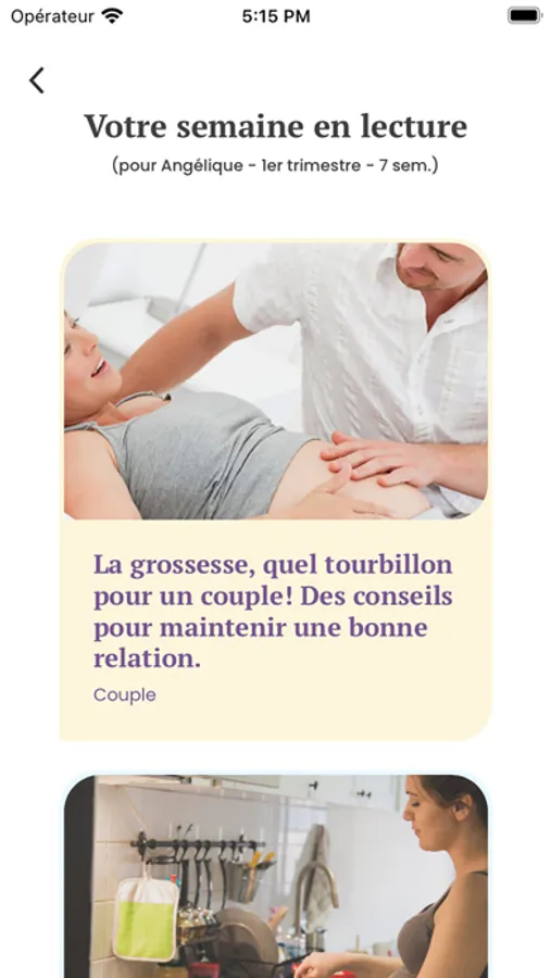 De l’information personnalisée en lien avec toutes les étapes de la grossesse, et ce, chaque semaine.