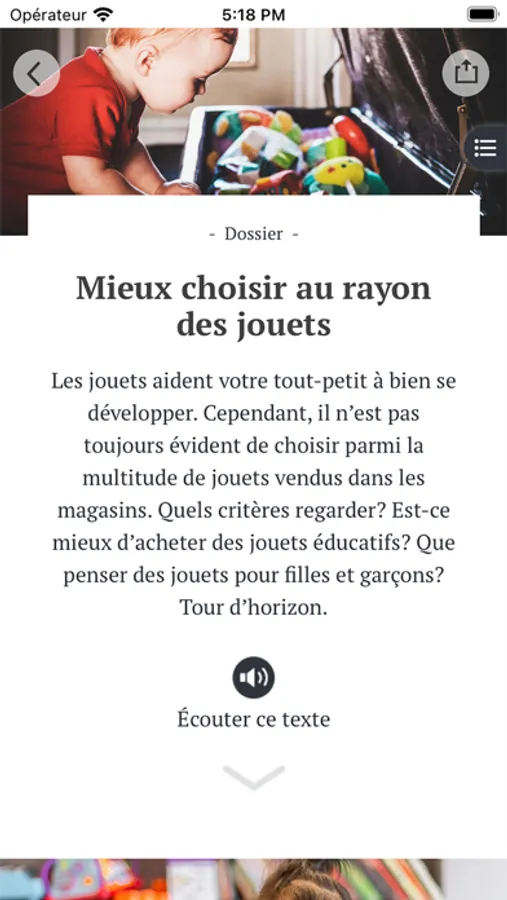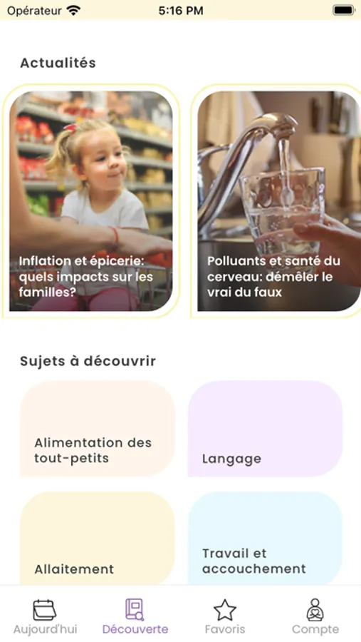 Du contenu fiable et validé par des spécialistes sur la grossesse, le développement de l’enfant, le comportement, le langage, la motricité, la vie de famille l’alimentation, la santé et le bien-être, etc.