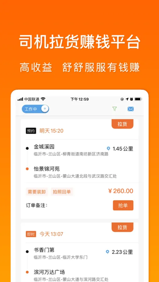 下载货的司机端注册认证,即可接单,减少空转,海量订单,收入猛增,自由挣钱,兼职、全职都可以!