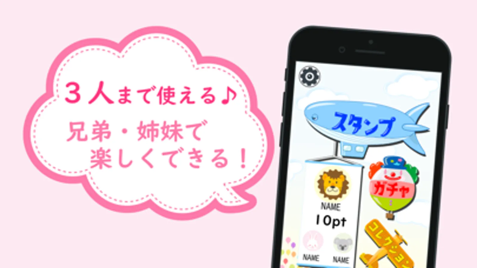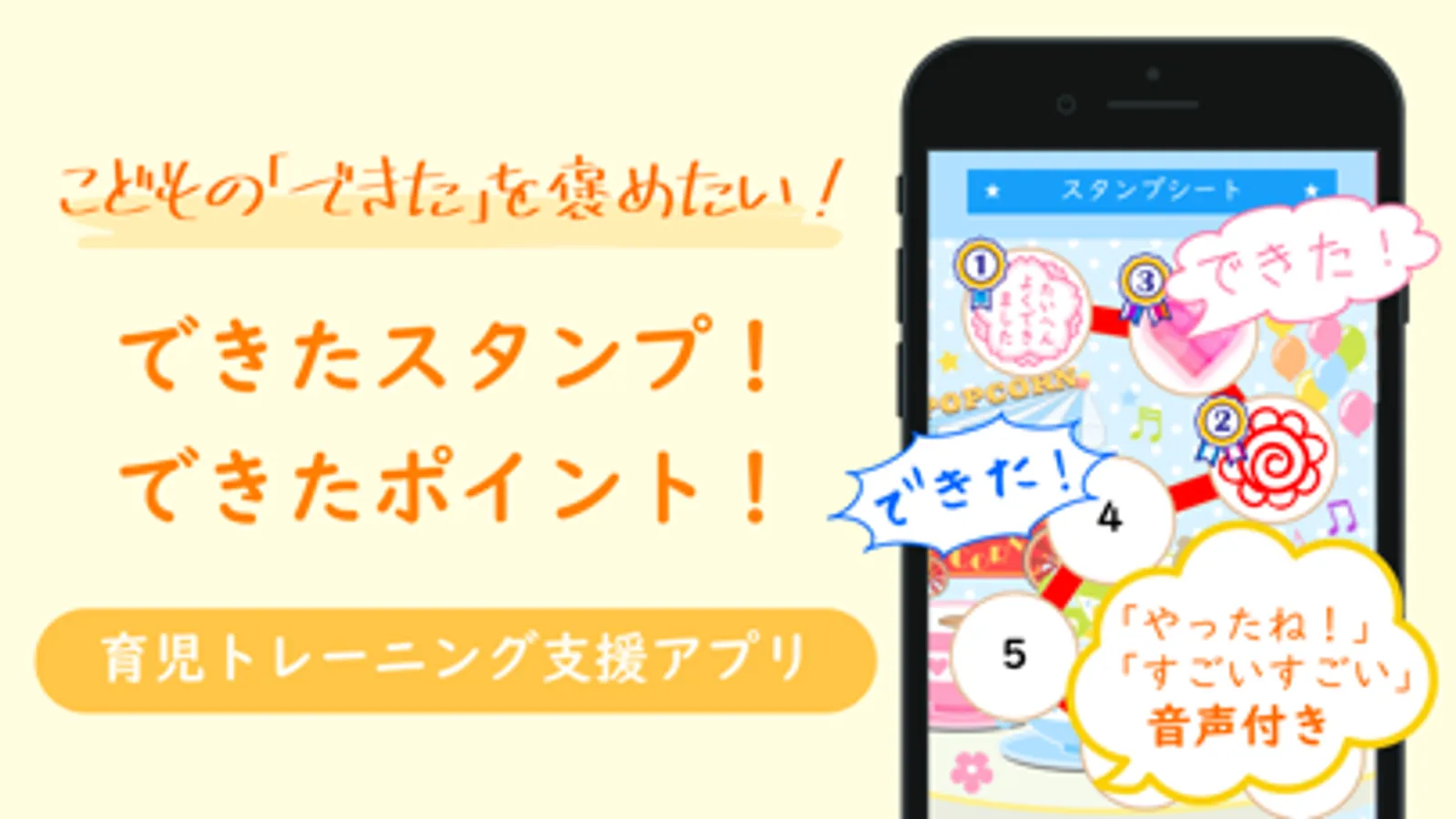トイトレなどの育児トレーニングで利用されるシール帳のように、幼児期の「できた!」をスタンプとポイントで楽しくできる子育て応援アプリです。