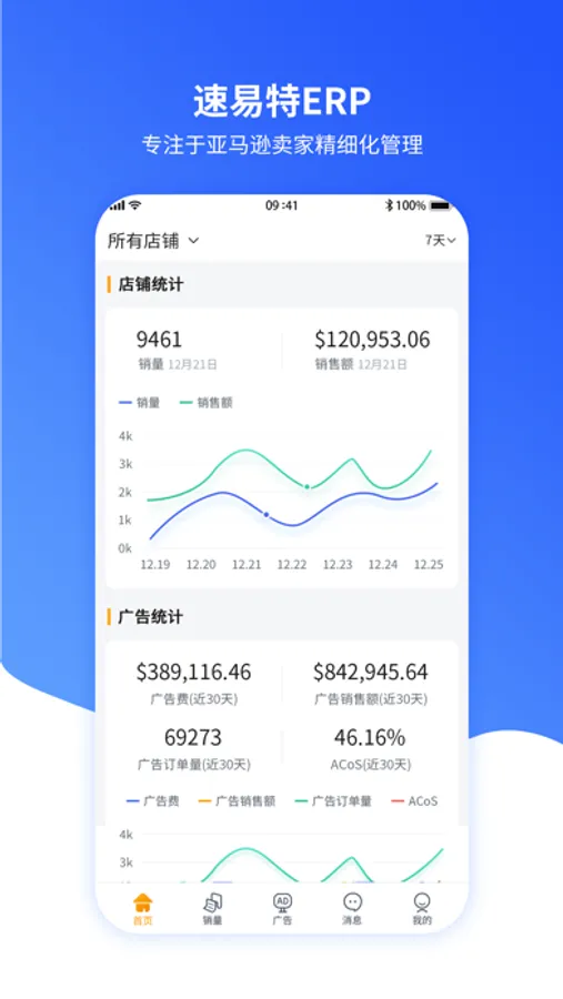 速易特ERP是一款针对亚马逊卖家的一站式专业管理系统,支持运营、客服、仓库、财务电商公司一体化管理,该APP是速易特ERP移动端部分,包括销量统计、广告管理、单据审批功能,帮助运营人员洞察关键数据,实时了解运营管理中的每个环节,提高运营效率。