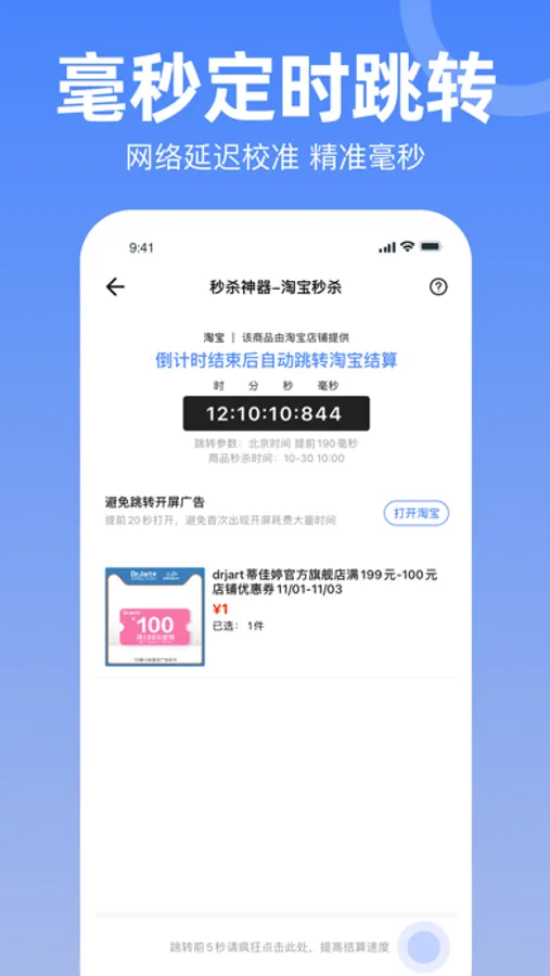 毫秒级时间校准,自动跳转,秒杀商品、限量商品通通搞定!