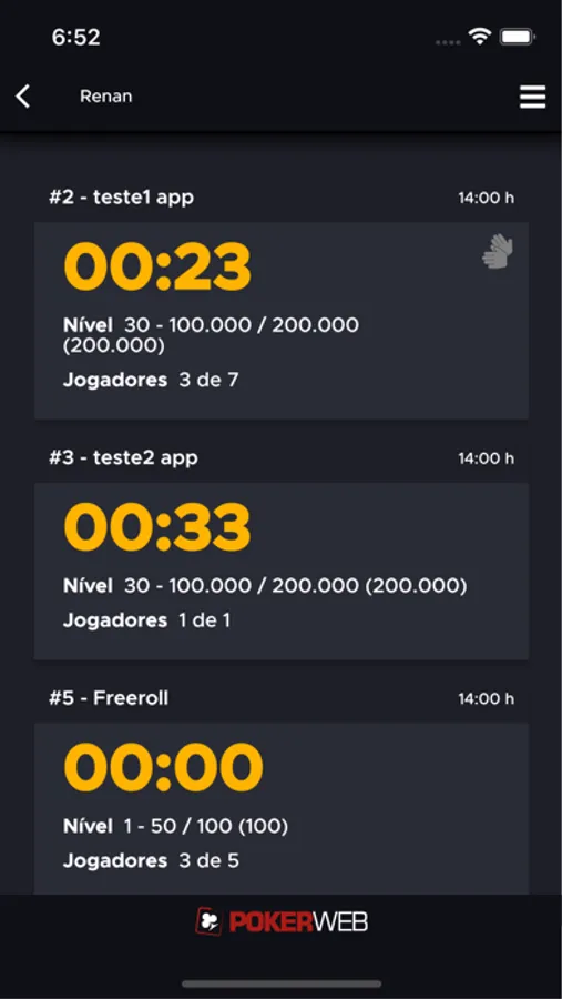 O app PokerWeb, foi desenvolvido, para uso dos clubes que possuem o sistema contratado.
