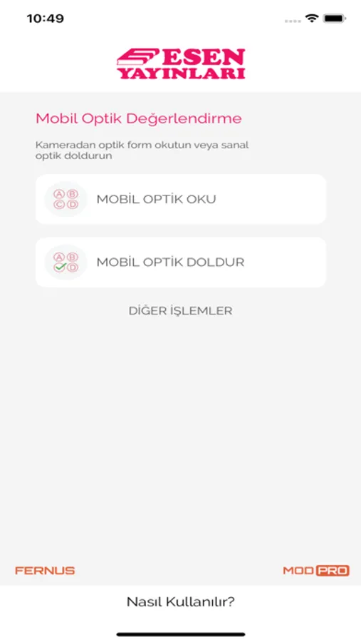 ■ Mobil Optik Değerlendirme uygulaması MOD-PRO'yu açın. Formunuzu okutun.
