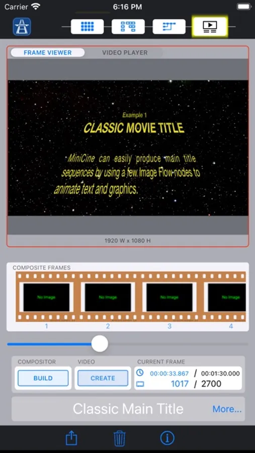 - a simple user interface that mimics a light-box for lining up and editing the elements that make up your effects shot