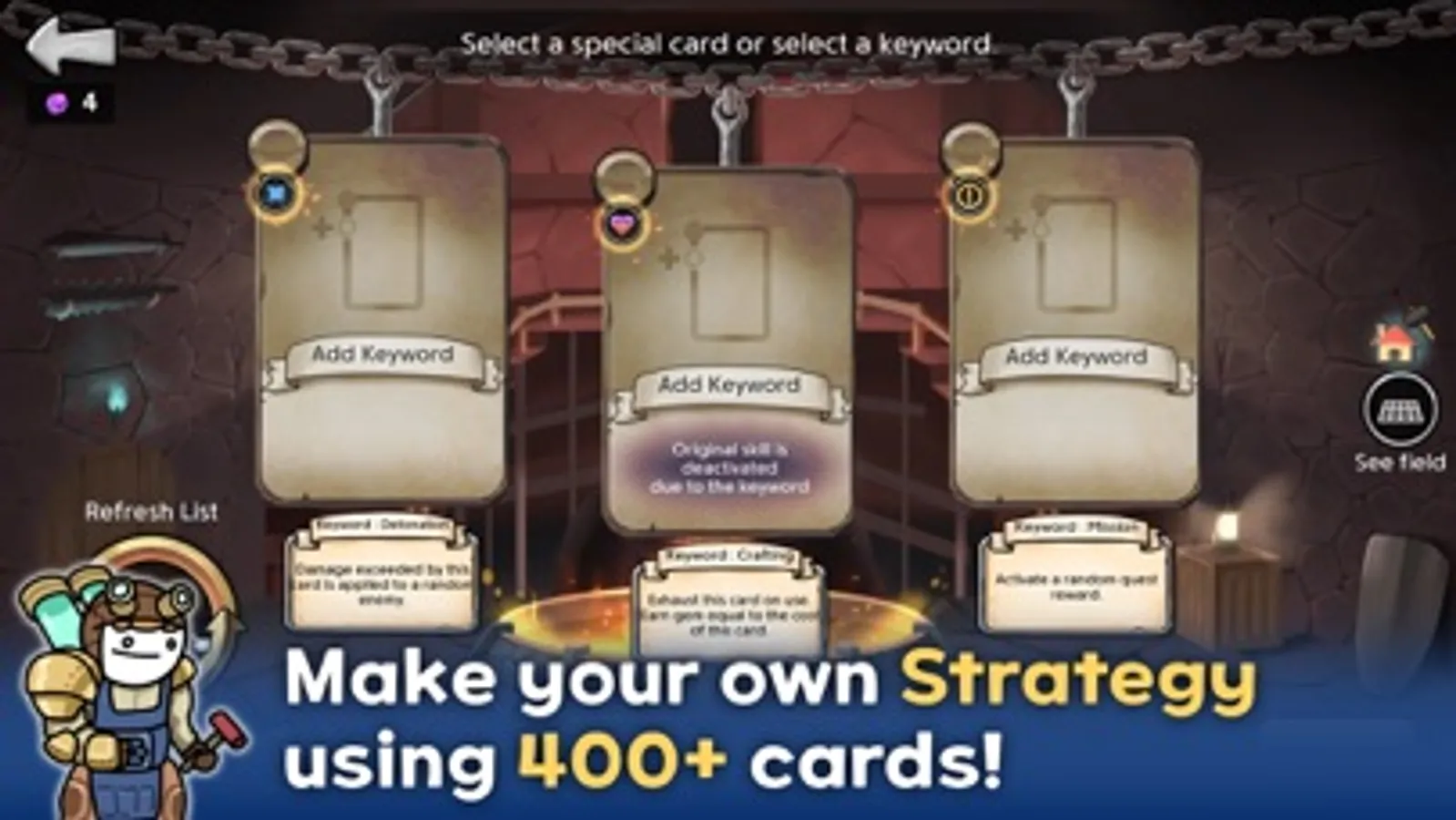 3 Minute Heroes is a real-time strategy game that combines the genres of tower defense, deck building, and roguelike.