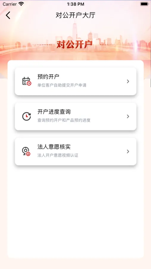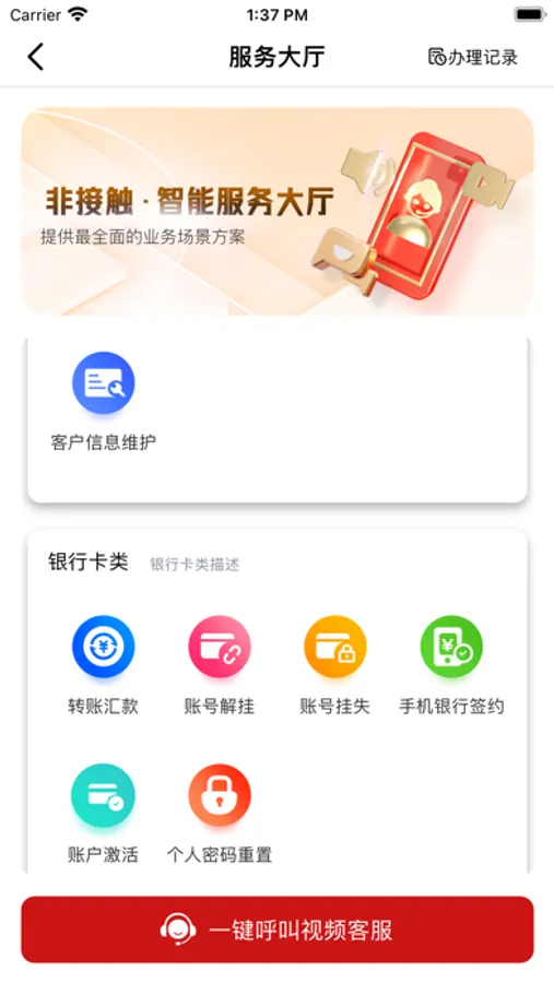 转账汇款、账号解挂、账号挂失、手机银行签约、账户激活、个人密码重置、客户信息维护、首次风险测评、对公开户