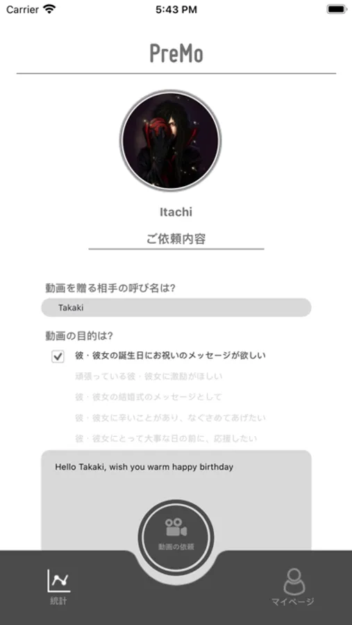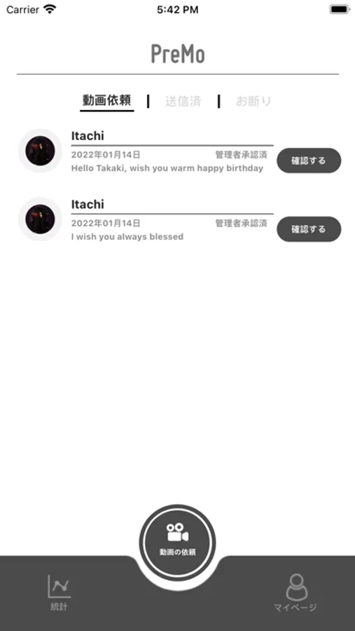 動画を依頼すると、最長で7日間であなたのパーソナルビデオメッセージを録音します。