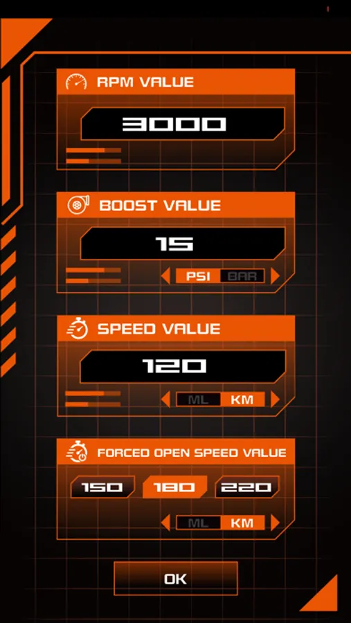 Whether you have a factory electronic motor or an aftermarket modification, this application allows users to control the exhaust valve switch by customize the values. Easy setting but give you full of joy. Don’t forget to connect to the Bluetooth first!