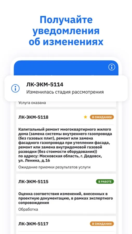 Сведения в ваших заявлениях в личном кабинете обновляются каждый час. С приложением вы будете получать уведомления об изменениях в стадиях рассмотрения и о поступлении в личный кабинет новых документов.