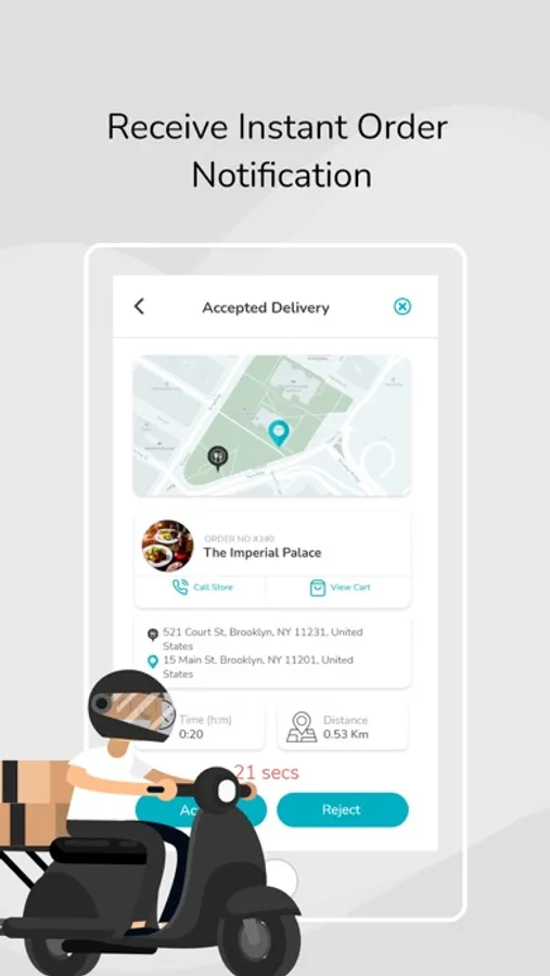 It provides available deliveries in real time and provides the address of the restaurant where the order needs to be picked-up. It also provides the delivery person with the address where the order needs to be delivered to. It keeps track of order history and earnings.It has a map interface making it easy to navigate from point to point. It has a clear notification sound that will cause you to never lose another order again. It can also maintain a copy of your driver's license and other documentation.