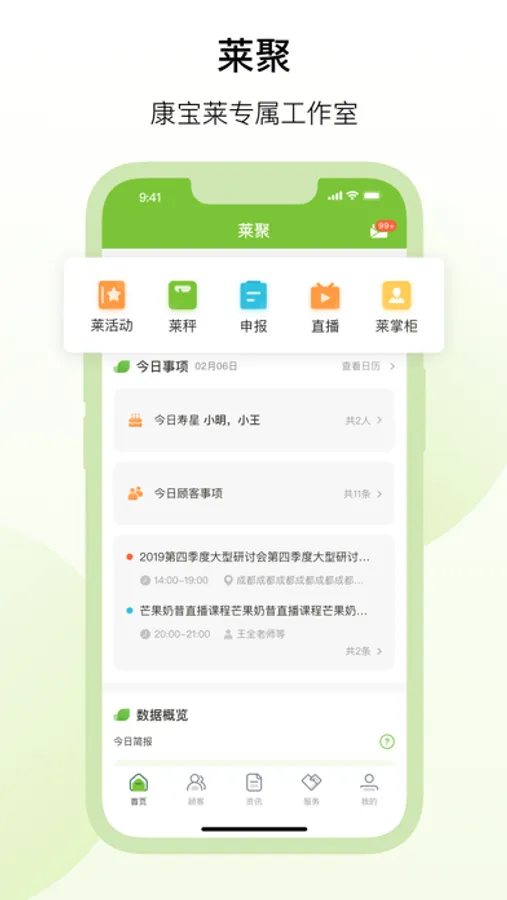 莱聚 APP 聚焦康宝莱营销人员群体,用高效便利的服务工具为体验增效,用符合场景的亮点功能打造一站式的事业赋能平台。降低获客成本,提升服务效率,做康宝莱事业伙伴们最得力的业务助手!