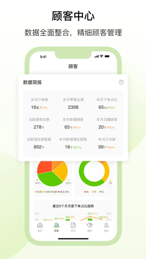 【顾客中心】莱秤助力服务顾客/潜客,健康数据专业分析;莱活动便捷邀约,玩转各类活动,线上线下顾客数据整合管理,标签化顾客信息,精细化顾客运营。