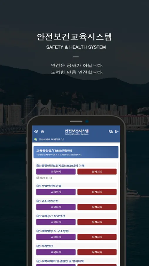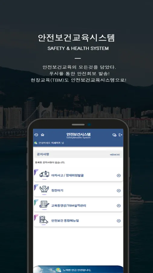 안전관리 앱을 통하여 중재 재해 발생을 사전에 예방하고 작업자의 안전의식을 제고한다.
