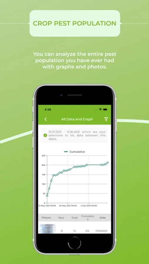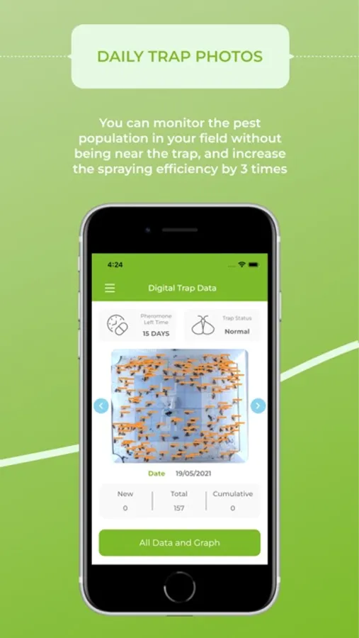 Thanks to the trap images taken from the digital pheromone trap and high-accuracy deep learning algorithms that diagnose and count the pests, you can follow the pest population in the field through the application.