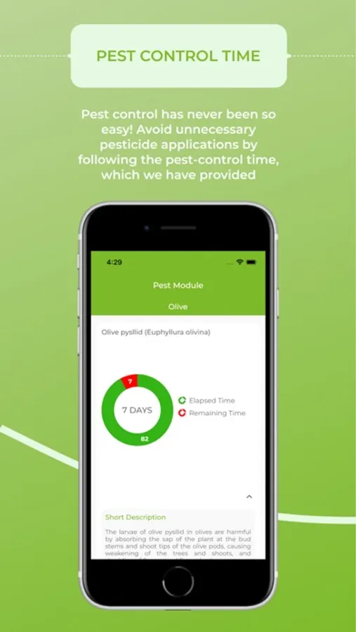 You can remotely monitor the biological period of the agricultural pest that threatens your farm, get an estimate of how many days are left until the spraying time, and receive a notification including the active substance that you can use when it is time to spray, with the timely detection module for agricultural pests based on pest population level and temperature accumulations.