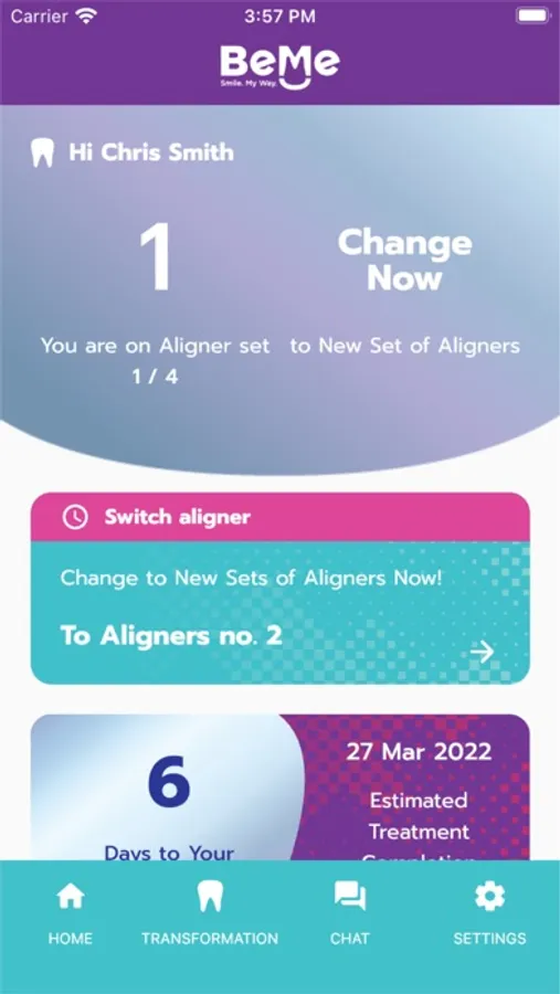 The BeMe App is the tool to connect you with your dentist, so they can monitor your BeMe aligner treatment just like seeing you in person. You can keep track of your treatment, be reminded to change to new aligners, see how your teeth transform over time, and also chat with BeMe customer service team in the app.
