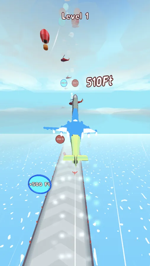 Time to reach to stars! Use altitude-increasing gates to reach the new layers of sky. Evolve your plane for different heights.